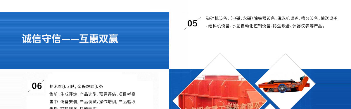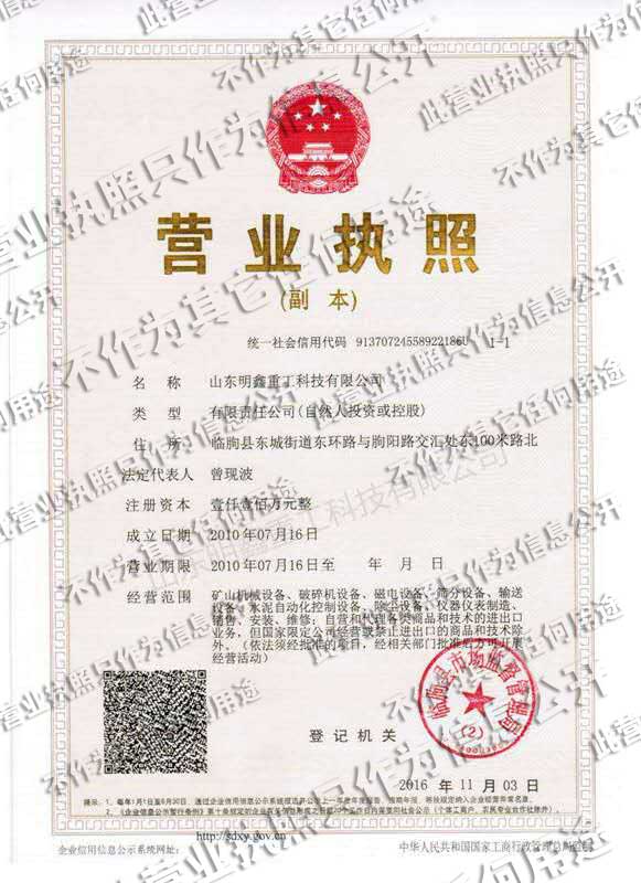 山東明鑫重工科技有限公司為是集科研開(kāi)發(fā),設(shè)計(jì)制造、銷(xiāo)售、安裝、調(diào)試為一體的技術(shù)制造企業(yè)。公司位于美麗的****風(fēng)箏都-濰坊市(國(guó)家AAAA級(jí)森林公園-沂山景區(qū)駐地)臨朐東城工業(yè)園。本公司產(chǎn)品種類(lèi)有:破碎機(jī)設(shè)備,(電磁、永磁)除鐵器設(shè)備,磁選機(jī)設(shè)備,篩分設(shè)備,輸送設(shè)備,給料機(jī)設(shè)備,水泥自動(dòng)化控制設(shè)備、除塵設(shè)備,儀器儀表等產(chǎn)品。其產(chǎn)品有五十多個(gè)系列,四百多種規(guī)格,并可根據(jù)客戶(hù)需求設(shè)計(jì)生產(chǎn)相應(yīng)的產(chǎn)品。其產(chǎn)品廣泛應(yīng)用于冶金、電力、煤炭、礦山、造紙、食品、化工建材、耐火材料、磚瓦、水泥、玻璃等行業(yè),產(chǎn)品暢銷(xiāo)國(guó)內(nèi)三十多個(gè)省市、自治區(qū)。 |