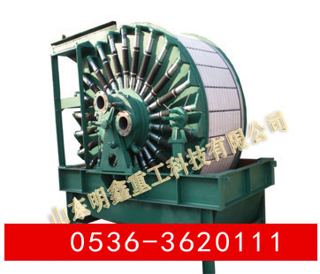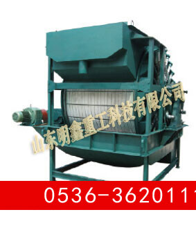 GZC真空永磁過濾機為上部給料的筒型外濾式真空永磁過濾機,主要適用于對較粗顆粒強磁性物料的脫水。 筒體內部裝有鍶鐵氧體****磁系,可促使磁性顆粒迅速吸附到濾布表面,磁濾機主要用于粒度較粗的強磁性礦物精礦礦漿的脫水,由于是上部給料,使得濾餅中精礦按粒度分層的效果更加明顯,當磁性精礦形成濾餅時,顆粒同時受到重力和磁力的作用,粗顆粒精礦比細顆粒精礦向濾布運動的快,精粒首先接觸濾布,故濾餅的透氣性好,而且礦漿中磁性顆粒在磁力吸引下呈放射狀布于圓筒表面,并由于磁系極性變化而產(chǎn)生磁攪動作用,這都成為濾餅易脫水的有利條件,使得濾餅厚且透氣性好,顯著的提高了生產(chǎn)率,與同規(guī)格的筒形真空過濾機相比,其效率提高三倍以上。 該機礦漿中固相顆粒的比磁化系數(shù)不低于3000*10-6厘米/克,顆粒粒度為0.15-0.8毫米。給料濃度60%。 |