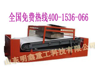 平板磁選機(jī),采用帶式分選結(jié)構(gòu),在整個(gè)工作區(qū)域從進(jìn)料到出料,物料在皮帶的帶動(dòng)下,可對(duì)物料進(jìn)行多次磁攪拌,同時(shí)在水流的沖洗作用下,把不含磁的尾礦除去,帶有磁性的礦物被皮帶輸送到板選機(jī)的脫磁區(qū),從而將帶有磁性的礦物通過脫磁裝置脫掉,來(lái)完成選礦的過程,整機(jī)功率小、處理大,磁場(chǎng)強(qiáng)度高,并達(dá)到很好的品質(zhì),能夠獲得更大的效益。